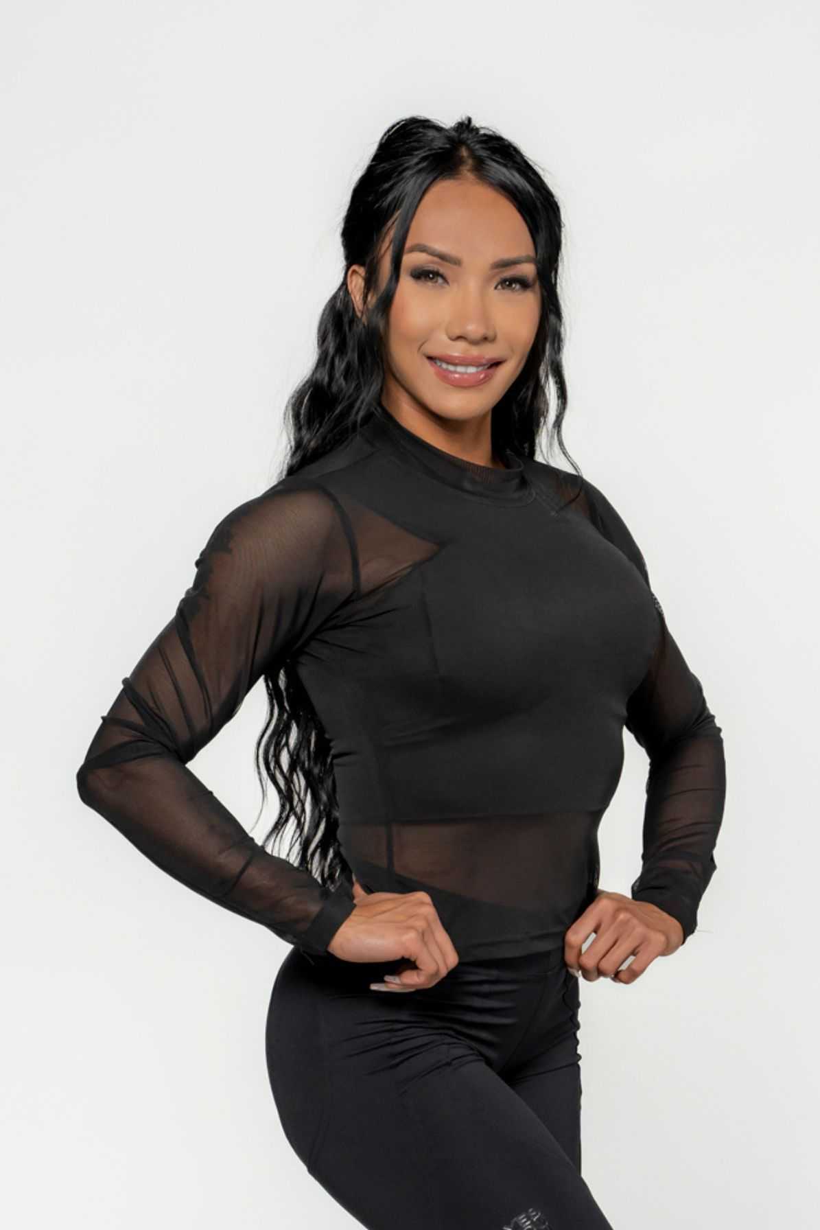 This design piece is guaranteed to impress even in a crowded gym! Layering is very fashionable, and now you can finally enjoy it in fitness clothing with this women's long-sleeved top made from high-quality mesh.