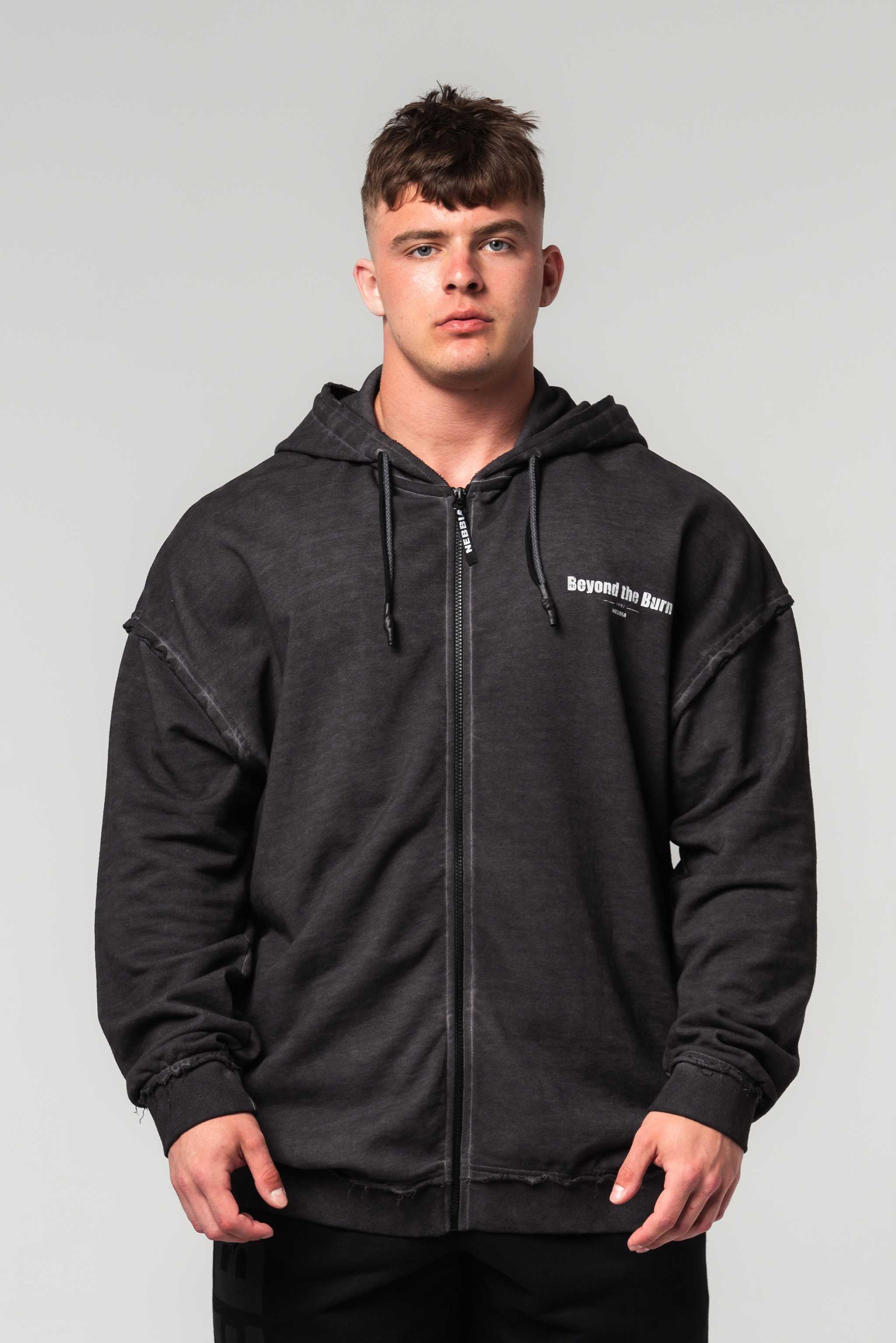Nebbia Washed-off Zip Up Hoodie GYM BRO